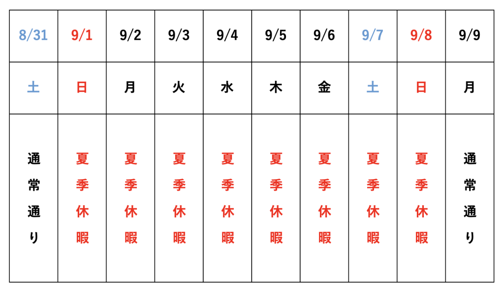 夏季休暇の予定が決まりましたのでお知らせいたします。